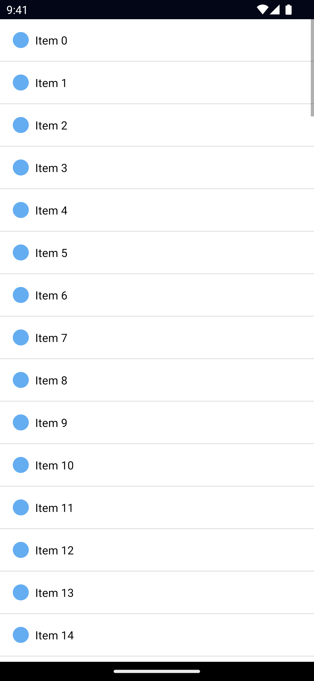 listView.scrollToIndexAnimated(index: number)Scrolls the item with the specified index into view with animation.